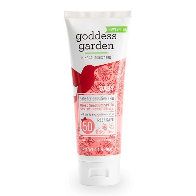 Out of Stock. Goddess Garden Baby SPF 50 Mineral Sunscreen Stick for Sensitive Skin 06 oz Reef Safe Clear Zinc Oxide Broad Spectrum Water Resistant Non-Nano Vegan Leaping Bunny certified Cruelty-Free. After discovering our daughter was sensitive to synthetic.